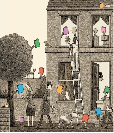 Я не вірю, що всі книжки мігрують, або повинні мігрувати на екрани. Колись, більш ніж за 20 років до того, як з’явився Kindle, Дуґлас Адамс сказав мені, що паперова книжка схожа на акулу. Акули старі: вони були в океані до динозаврів. І причина, чому акули ще існують, в тому, що акулам краще бути акулами, ніж будь-кому іншому. Матеріальні книжки міцні, їх важко знищити, вони стійки до купання, «працюють» на сонці, їх зручно тримати в руці – вони добре виконують свою роль і для них завжди буде місце. Вони «свої» в бібліотеках, попри те, що бібліотеки вже встигли перетворитися на місця, куди можна піти, щоби отримати доступ до електронних книг, аудіокниг, DVD-дисків і веб-контенту.