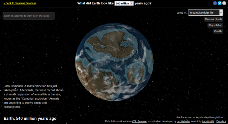 Эту интерактивную карту создала организация Dinosaur Pictures. Над визуализацией работал экс-инженер Google Ян Вебстер, а тектонические и палеогеографические карты предоставил проект Paleomap. Проект создан исключительно в образовательных целях.