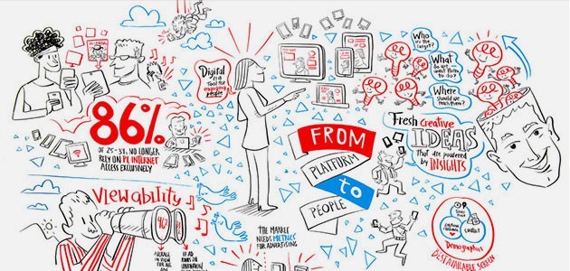 Главное в скрайбинге — эффект параллельного следования: голосовое повествование последовательно сопровождается набросками и зарисовками, нередко еще и текстовой записью опорных понятий.