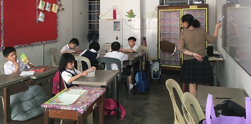 Урок в младшей школе китайского типа. Пинанг