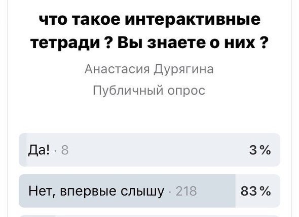 Я также провела опрос среди родителей в одном известном паблике в социальной сети — никто не знает, что такое интерактивные тетради, представляете?