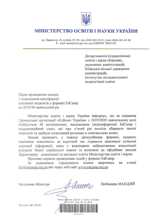 EdCamp Ukraine представ графік регіональних (не)конференцій на 2019/2020 навчальний рік.
